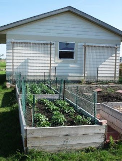 The big, unplanted raised bed to the right of the potatoes? That's for cantalopes and watermelons. Yum!