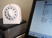 Connect. Have your blog automatically fed to Twitter, Goodreads, your Amazon author site, to your LinkedIn profile. This will automatically extend the time you spend with your online community.Assign particular days to particular sites: One day a week sending out a query for a book review of your novel. Ten minutes three days a week on discussions. One day a week on an author site like Book Country or Authonomy. Yes, of course that's not enough. But the sky won't fall, Chicken Little!Separate marketing time from personal online time. How you deal with personal, recreational time online is up to you. Time it, swim in it, go for it, eliminate it--but think about it and make a decision about how you are going to deal with it. Don't mix the job of marketing with the social activity of online interaction with your friends--however you define that word.OK, 2 minutes left. I'll try this out and keep you informed. Just gave myself 5 more minutes for proofreading and revision. By the way--that timer in the photo (with the obnoxious alarm) I just bought today.
