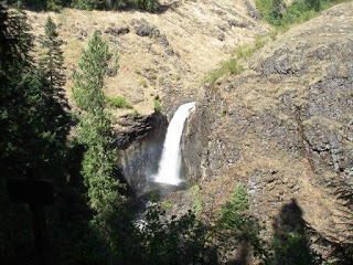 The middle falls. Still far away but a wonderful hike through shaded forest.