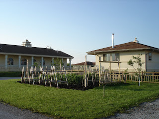in the southeast corner of our yard We are using the A-frame trellises for butternut squash and cucumbers. The vertical lattice that uses twine for runners is for Kentucky Wonder pole green beans.