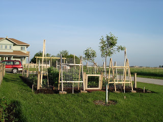 north of our house Not only is space used more efficiently to boost the production of the garden, but that openness and increased use of space allows for more air flow, decreasing the spread of disease--in my opinion, anyway.