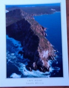 She gets the postcard of Cape Point (which inspired Pelim’s Leap):