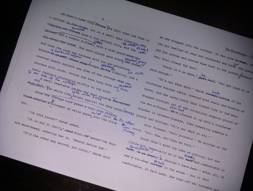 As you can see, I just could not bring myself to use a red pen. I needed to be a little kind to my poor writer-brain, after all.