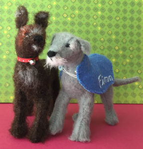 Finnian and O’Malley are two posable pups just waiting for someone to play with. They stand at 4-1/4″ high and are 5″ long (excluding their tail). They are made from wool felt with a figurecord skeleton which gives them so many posing possibilities!