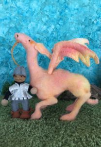 Spike is made from a bendy doll base, wool felt, cotton knit, and mohair. I have given you a list of my favorite suppliers, but most of these items can be bought from any Waldorf doll supplier.