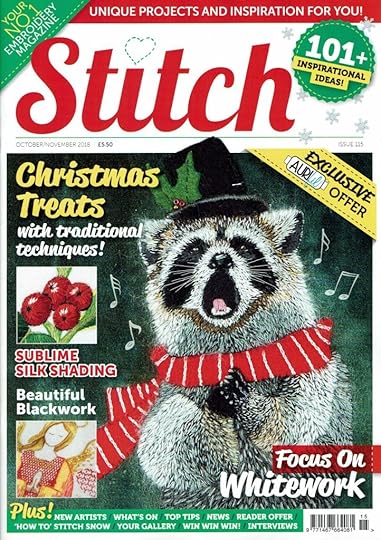 This past spring I was asked to create a project for the holiday issue of the Embroiders Guild (based in the UK) magazine, Stitch. Today I was surprised with the news that Carol, the caroling raccoon is the cover star! Interested in finding out more about this wonderful magazine? Here’s the link.