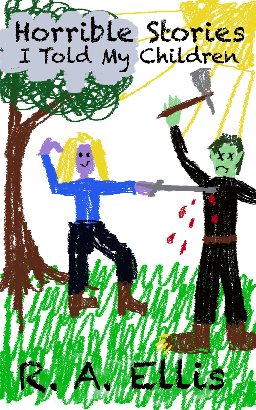 Part is business and travel. Most of October was spent either in frantic activity or exhaustion. Writing time has been spent on other stuff. Under K's publishing company, finally put out "Horrible Stories I Told my Children" under a pseudonym. Didn't want to use my kid's real names. You understand. Kami did the cover and the internal illustrations.