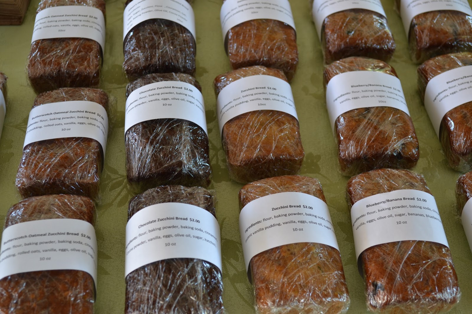 Emily and are are also continuing to enjoy Farmers' Market. She stays busy through the week making magnets to sell and I bake up a storm. My best seller has turned out to be my blueberry/banana bread.