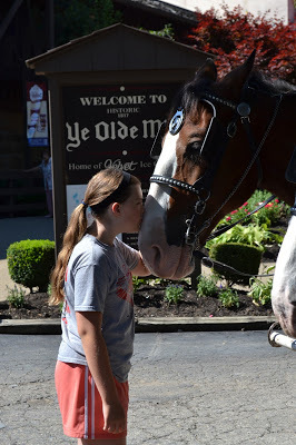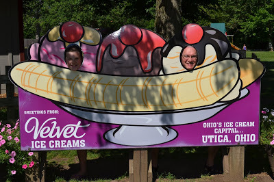 But instead of relaxing after we returned home and ate our lunch, My husband suggested a short day trip to the Velvet Ice Cream Factory. The factory, gift shop, and ice cream parlor are all located in an old mill that rests on beautiful grounds. There is a small pond with ducks. There is a short hiking trail next to the river. And best of all, there is ice cream to eat. This particular Saturday there was also a woman offering carriage rides, so Emily also got a little time with he favorite animals, horses. If you are ever in Ohio and find yourself near Utica, be sure to stop by.