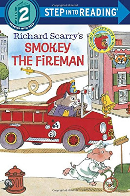 Since our KOA is only about fifteen minutes away from home, each morning I run home to feed and water the cats and scoop the litter boxes. Glamorous I know, but a mom/authors work is never done. This does afford me the opportunity to quickly read and review, however, and since last night when we sat around the fire we heard the sound of the visiting firetrucks giving kids rides around the campground, I thought it would be appropriate to share Smokey The Fireman by Richard Scarry.
