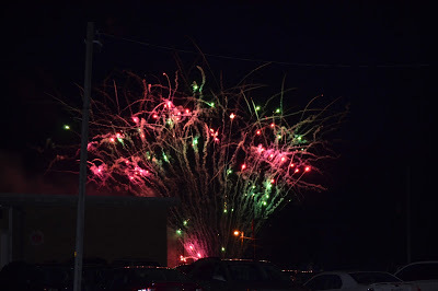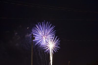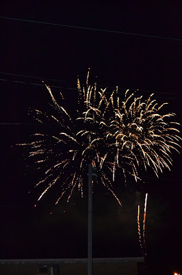 We also attended fireworks. Most cities host fireworks for the Fourth of July, but Shelby always waits until the following weekend and sets of fire works during the annual Bicycle Days. The fire works didn't last long, but I did manage to get a few fairly decent pictures during the show. And believe me, it was quite the job to get those few non blurry pictures.