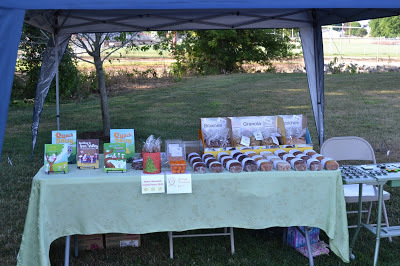 Managing my town's local farmers' market and selling baked goods while Emily sells magnets is a big part of our summer story. This past weekend we had to move from our normal farmers' market location because of the local cruise-in car show. We didn't have to move far, just to the back end of the park, but we didn't have the normal cover of our pavilion. Thankfully, however, most of my vendors had canopies and there was a lovely breeze.