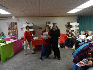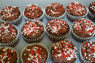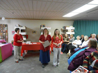 This past week held a wonderful surprise for both Emily and I. As you know if you have been following my blog, we've been spending time practicing our recipes for the 16th Annual Chocolate Lovers Bake Off sponsored by our local library. So with breath held and hopes high, this past Monday we took our entries and waited as the judges sampled all the offerings. They judged the children's table first and to our great joy we heard them call Emily's name as first place winner for her strawberry filled chocolate cupcakes with chocolate buttercream frosting.