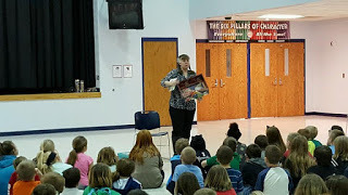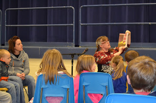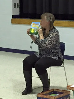 My second event was an all day visit to the Western Reserve Elementary School where I presented to children in kindergarten through sixth grade. All the children were attentive, asked great questions, and participated when I asked questions. I was also able to spend time with the school's librarian and my long time friend Mrs. Cindy Linder. But the big surprise of the day was What I Saw in the Teachers' Lounge. Actually it was what I saw in the science room which was doubling as a much larger teachers lounge,but since that is the title of the first book I read for review this week I thought I would go with that. Oh yes, what did I see? A beautiful pot luck lunch set up in honor of my visit. There were soups, and veggies, baked potatoes and toppings, veggie pizza, and chocolate cake and cupcakes. I was really touched by the thoughtfulness of the staff and hope I conveyed properly how much it was appreciated.