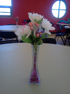 Emily helped me make some flower filled vase table center pieces. We used leftover Easter grass to cover the stems of the faux flowers.