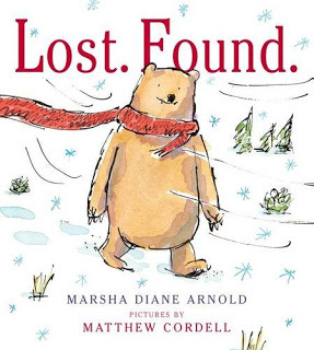 Marsha's Lost. Found. is a deliciously simple book that pretty much uses only the words lost and found to tell the story of a bear who has lost his scarf, the subsequent animals that find it and then lose it along the way, and bears eventual reuniting with said scarf. In addition, the beautiful illustrations by Matthew Cordell pull the story gently along.