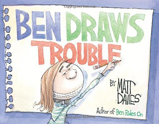The second book was called Ben Draws Trouble and was another story of a child who loved to draw. Ben doodled in his sketch book all the time. He especially loved to draw people, much like my Emily. But one day, while riding home on his bike, his sketch book got lost. When he returned to school the next day, someone had found the book and had placed it on the teachers desk. Ben thought for sure he was going to be in big trouble for the sketch he had drown of his tall bearded teacher, but instead he was invited to make art for a school program. This was another great book encouraging kids to draw.