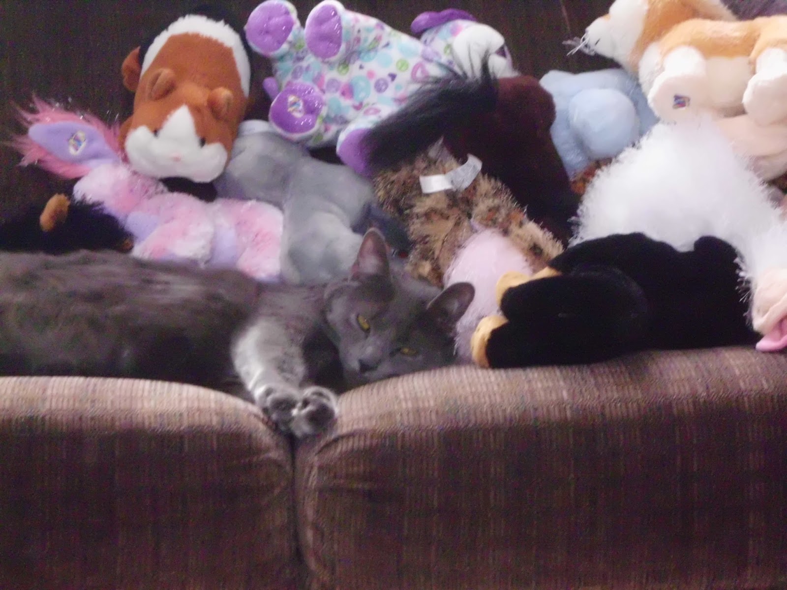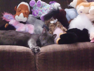 At our home we have lots of pets. We have three regular pets in the form of cats which includes Max who sometimes thinks he's a dog, Daisy who is an itty bitty kitty without a tail, and her daughter Fluffy who is scared of feet. And then we have all of Emily's Webkinz which probably number close to two hundred. She has received them as gifts, has found them at garage sales, and has saved them from unmentionable doom at the thrift store. To her they are more then stuffed buddies, and I am regularly called upon to make beds for them.