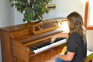 Some friends of ours were getting rid of a small spinet piano, and we were able to purchase it fairly inexpensively. Her aunt has agreed to teach her the basics, and she is very excited. I'm not sure yet if she grasps the concept of how much hard work learning to play the piano is going to entail, but for now we are just enjoying the new piano euphoria.