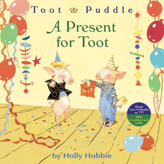 The second book I read wasn't a traditionally heroic type of tale, but it did have a friend who went out of h is way to give his bestie a most extraordinary birthday. It was Toot and Puddle - A Present for Toot by the authoress and illustrator Holly Hobbie. And yes, she is the very same person who is the creator of the famous character bearing her name.