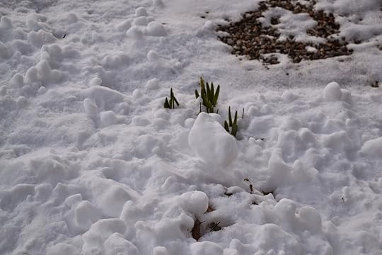 At the beginning of last week, it was warm and spring-like and my crocus were in bloom. But before I really had a chance to enjoy them, that last sprinkle of snow from old man winter's big duffle bag of weather descended upon us. Unfortunately, my crocus did not survive, but I still see remnants of what will undoubtable be beautiful daffodils once the snow melts.