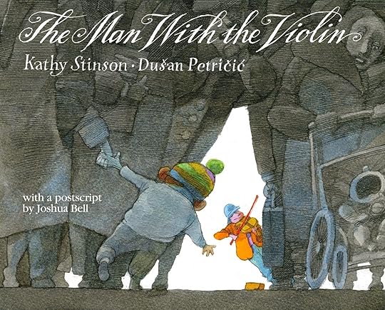 And speaking of appreciation, one of the books I read this week was all about how we so often forget to appreciate what is going on around us. It was called The Man With The Violin and was a realistic but fictional picture book. It was the story of a small boy going through the day with his mother when he heard a man playing a violin in the subway. He wanted to stop and listen, but his mom was in much too big of a hurry and she pulled him along with her. Later in the day, the boy hears about the music man on the radio and finds out that he was a world famous violinist.