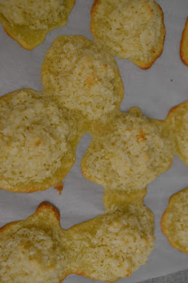I've also continued with my cookie baking project. My goal is to bake one or two types of cookies every few days. I freeze them as I go and when Christmas is close, I'll take them all out and decorate those that need decorated. But sometimes as happens when a person is creating, an epic fail occurs. My epic fail was in the form of Coconut Macaroons. I attempted to make them and followed the directions religiously, but alas what I ended up with was a clumpy coconut pancake instead of a crispy cookie.