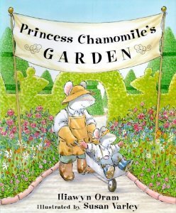 The second book I chose was called Princess Chamomile's Garden by Hiawyn Oram. Princess Camomile is bored and so the Gardener invites her to work with him in the big garden. But, the big garden is too big and Princess Chamomile sets out to remedy that by planning her very own smaller garden complete with a hopscotch area, hide and seek bushes, a tree house, and so much more.