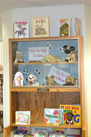 Then we headed to the children's section to pick out some books. While there I also took a picture of the display I created to match the summer theme of "Dig Into A Good Book". Dig could apply to many things such as treasure, dinosaurs, or bulldozers and construction, but I chose dogs since Emily has so many and wouldn't miss a few.