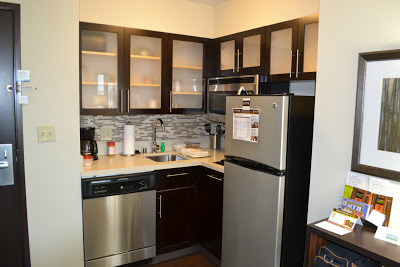 In about the space of ten minutes a very relieved me was pulling into the Staybridge Suites parking lot. I jokingly told the manager on duty that I needed to upgrade my maps because I ended up in no man's land. He then set my mind at ease and told me that the hotel was new and the coordinates had yet to make it into the system. So tired, and yet relieved, I hauled my things to the third floor and into my oh so lovely room. Now for any of you who know that I love to cook almost as much as I love to write, you will understand my awe over the kitchen in my room. It was an inspiring dream hotel kitchen all shiny and new, and the only drawback was the fact that I had no food to cook.