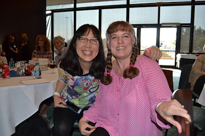 I also managed to spend a little time with Debbie Ohi for the second time this year (squee). Not to mention I bought a copy of Where Are My Books which she autographed with a little image of me. That alone would have made this book special, but the story and illustrations are FANTASTIC! Like me, Spencer loved books. So much so, that he was devastated when his books began to vanish. To avoid any spoilers I'm not going to tell you who took his books or how Spencer resolved the problem. I will simply say, "RUN don't walk to your nearest book store and grab a copy of your own."