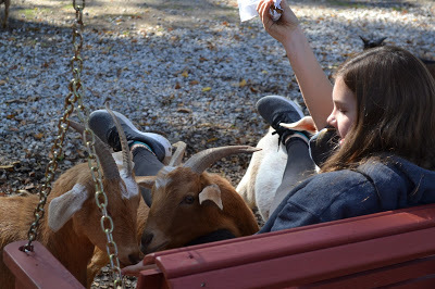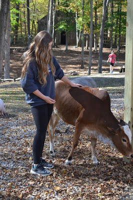 Emily also took a trip to the petting zoo to spend some time with the pot bellied pig, some goats, and some exotic cows. We even saw some beautiful deer in an other enclosure.