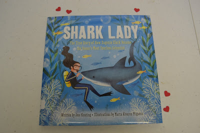And I certainly dive into reading picture books for review. So when I went to the library this week to change out the children's display case, you can imagine my delight when the librarian told me the book I was waiting for had arrived. Not long ago I ran into Jess Keating at Nerd Camp MI where we were both presenting and where I learned all about her latest book Shark Lady - The True Story of How Eugenie Clark Became the Ocean's Most Fearless Scientist.