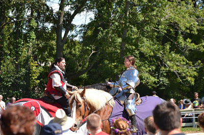 But if you don't run into her on the street, you can see her at the jousting tournament. But a word to the wise, get to the jousting arena early or you won't get a seat. Fortunately, we had witnessed the jousting three years ago when we attended, so I still have great pics to show you what the jousting experience looks like!