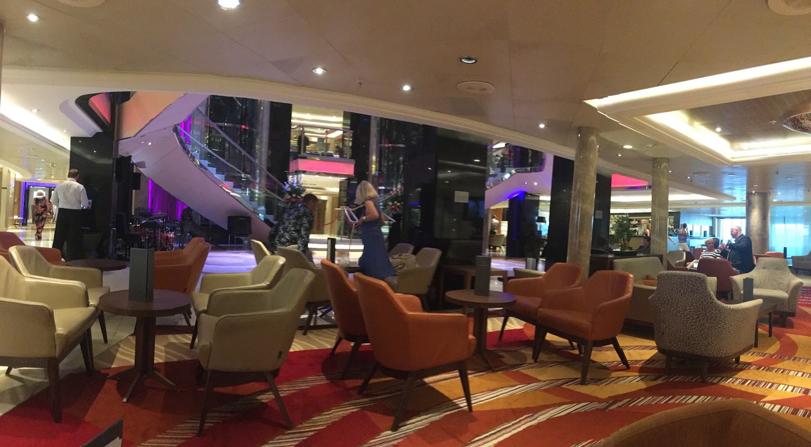You notice changes every time you come onto the ship and one of those was that there is no hiding in your cabins and avoiding the life jacket practice. For the record, I never avoided them. It's nice to mingle and gives me the chance to see if I recognise anyone I've cruised with before plus we always play 'spot the plank' an integral part of the cruise. The lads and I used to take bets on who we thought would be the first person to disobey the crew's message to 'watch and not do'. I spotted the plank first this time, I am proud to admit. Now you have to get your cruise card scanned and if you haven't attended then, then you will have to at a later date. Who wants that? It doesn't take very long (at least it wouldn't if people arrived on time). My holiday begins properly after that. Choice of bars for a cocktail? Plenty. Be rude not to try them all. Check out my chocolate orange gin one.