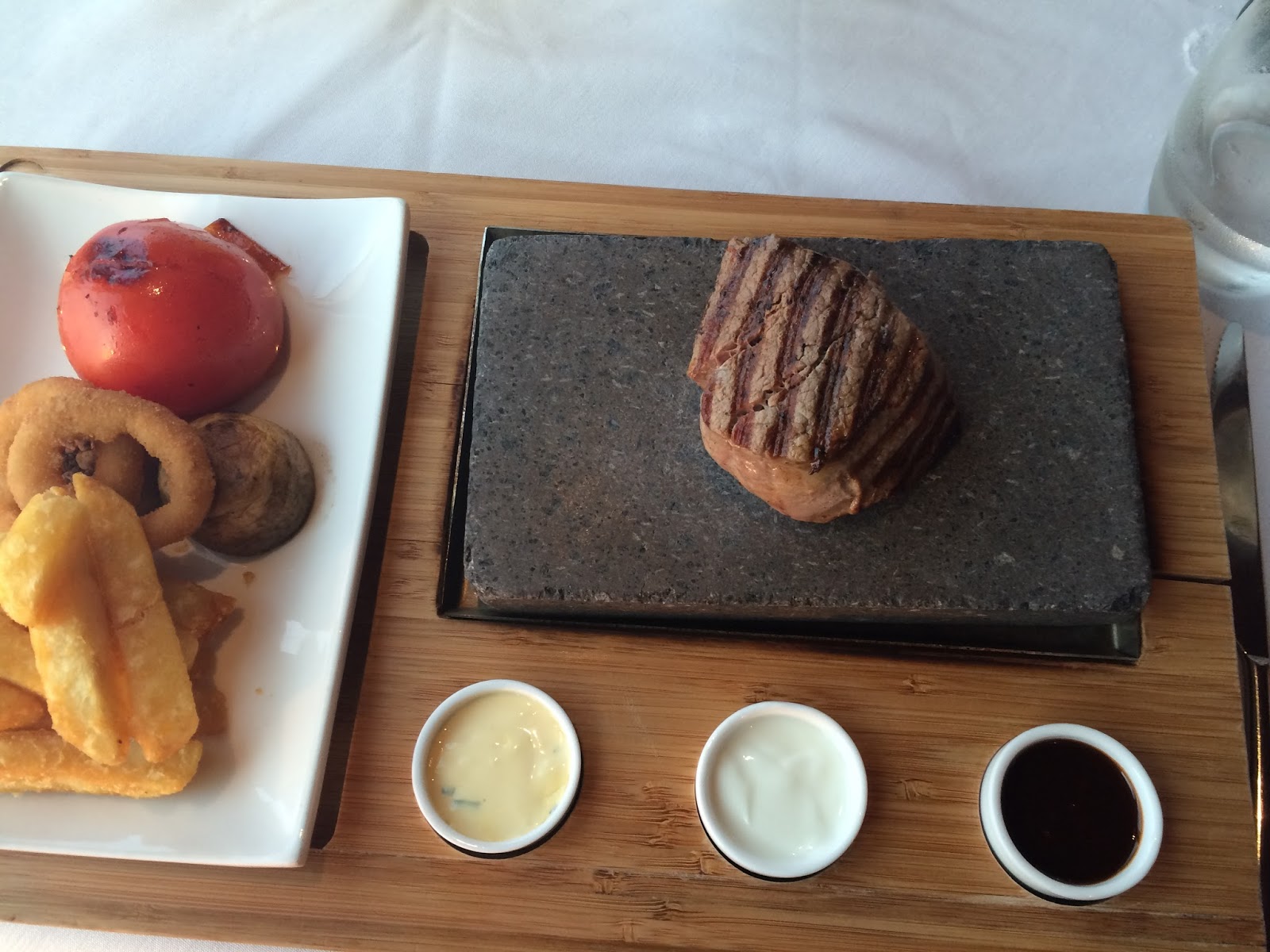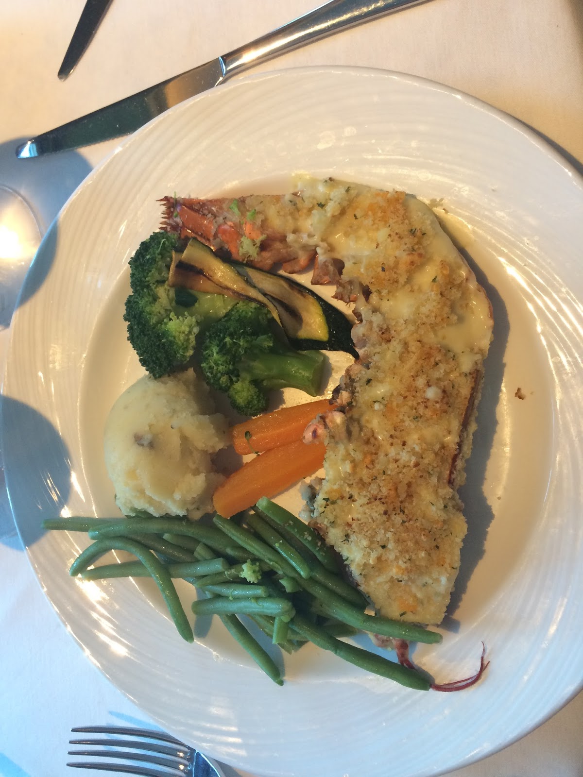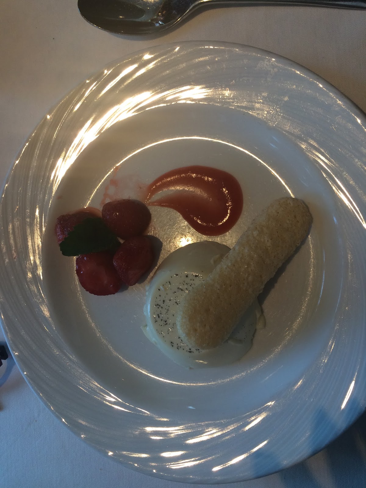 Then it was a sea-day. So we had a lunch in the old Glass House. My son had a chocolate canneloni. We had to try the peanut butter ice-cream with caramelized bacon though.