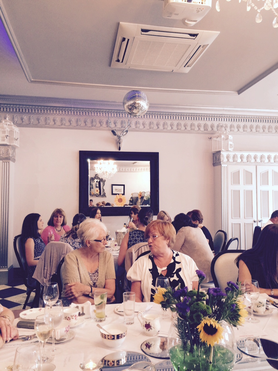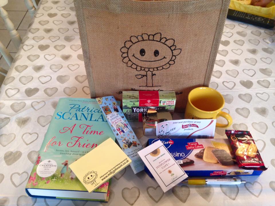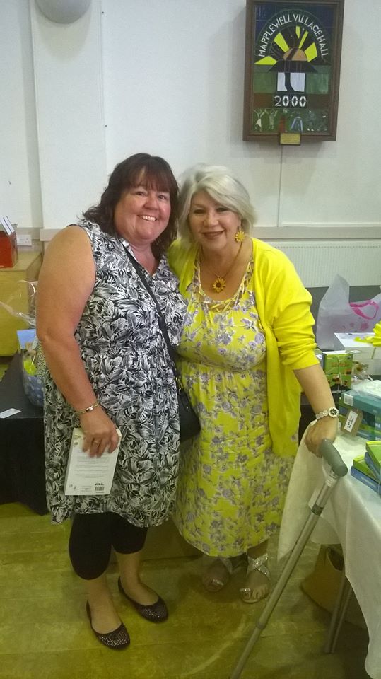 with Jenny - one of my 'regulars'The afternoon saw me doing a fundraiser at the White Heart for Claire Throssell. My Tea party and it was just wonderful - vintage china, beautiful sandwiches and scones and home made carrot & coriander soup in a teeny cup! And lots of sunflowers. Claire's situation has touched everyone - and nowhere stronger than in her own community. We had a prize draw and raised £623.00 for her.
