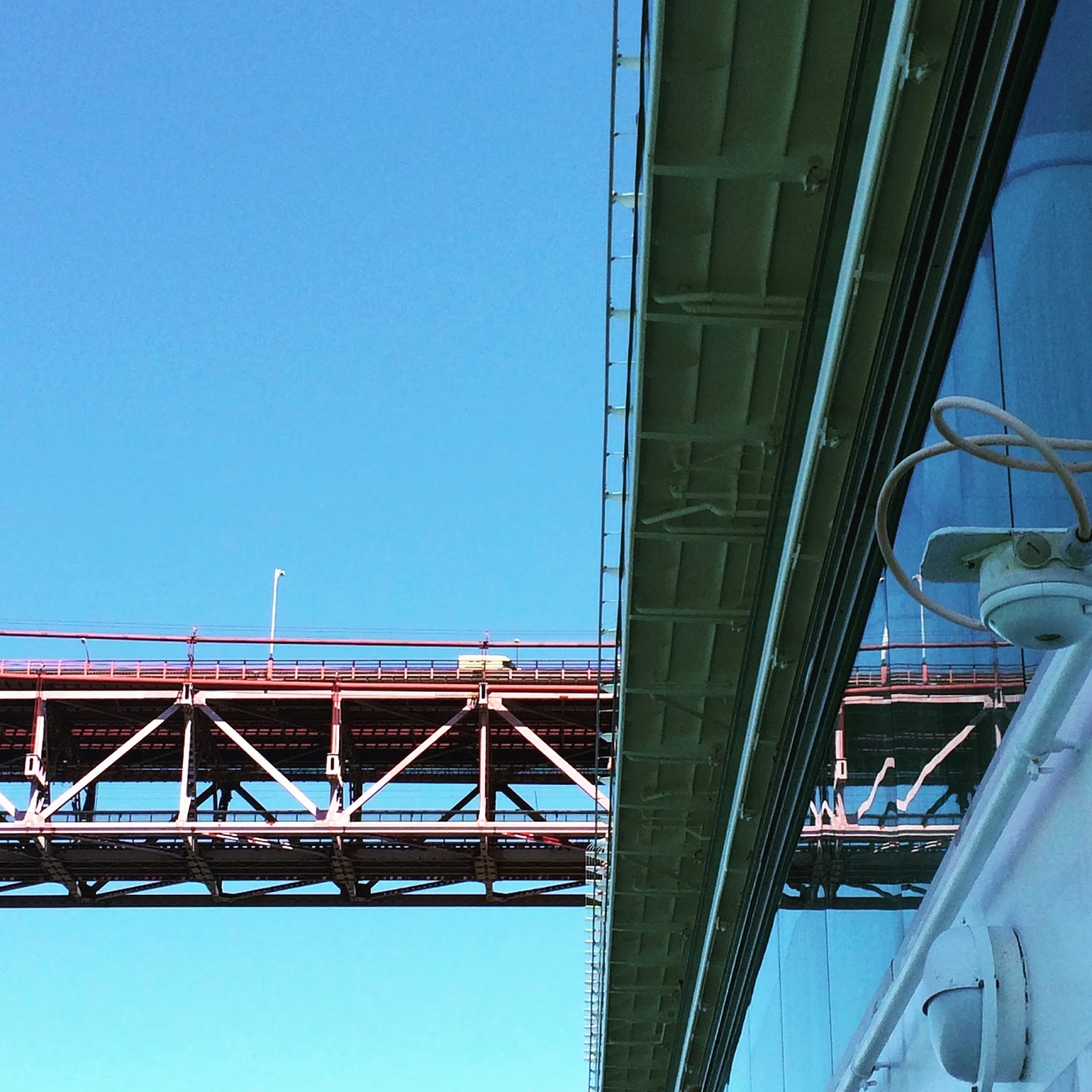 And then we set sail for sunny Lisbon. Had a lovely day sitting in a (WiFi) cafe with a great lunch, soaking up the sunshine. Getting under the bridge as we leave is always a moment when you feel you need to bob your head.