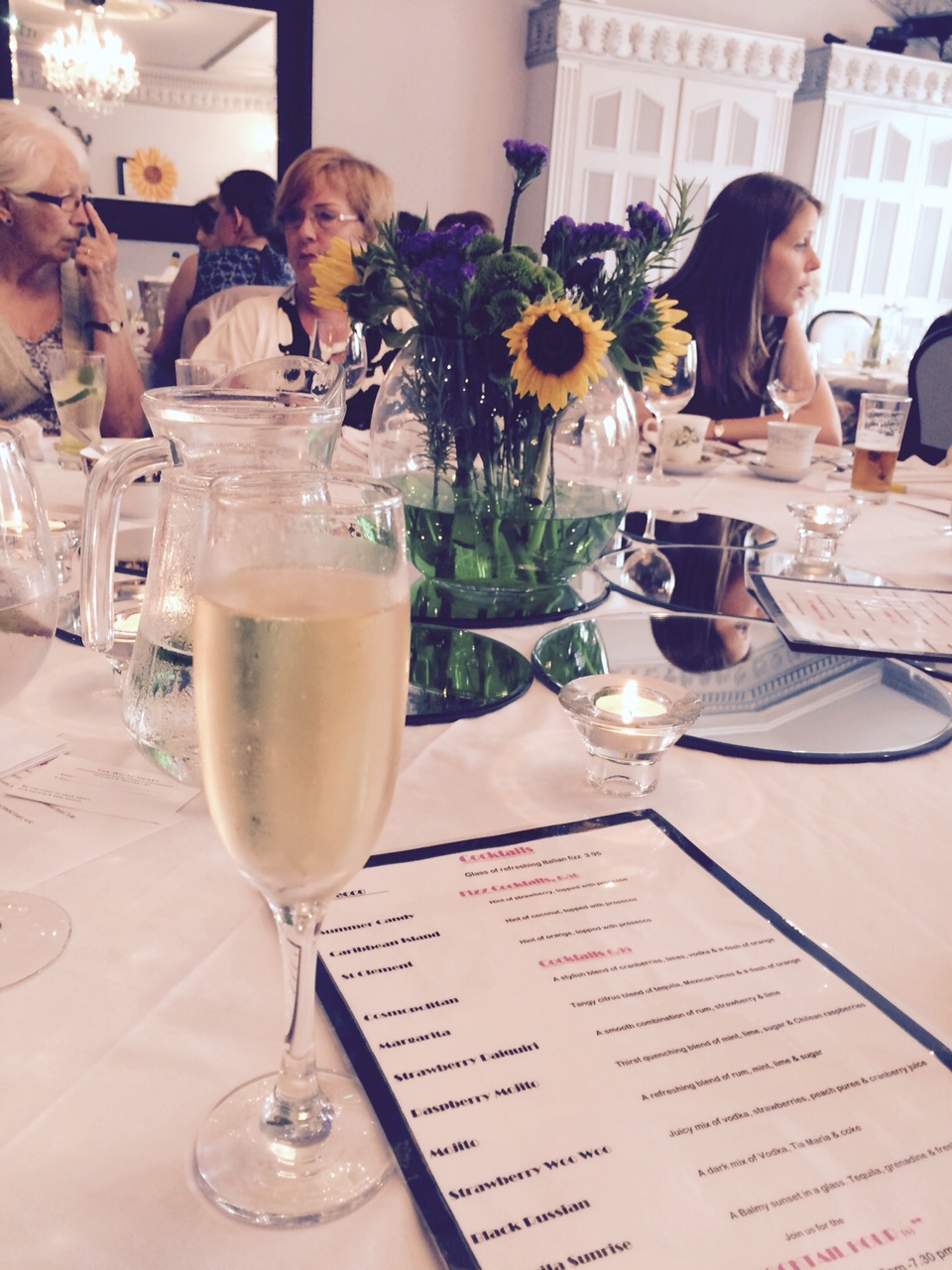 And a Raspberry Creme Brulee cocktail. I'm on holiday so if I want one as a pudding, I'm flaming well having one.It's traditionally a formal night on the second night. Bay of Biscay was sort of behaving - a cheeky little force 4/5 so we got tarted up ready for dinner. Ooh - what is that at the door - more champers and canapes. You do know how to spoil a girl, P & O!