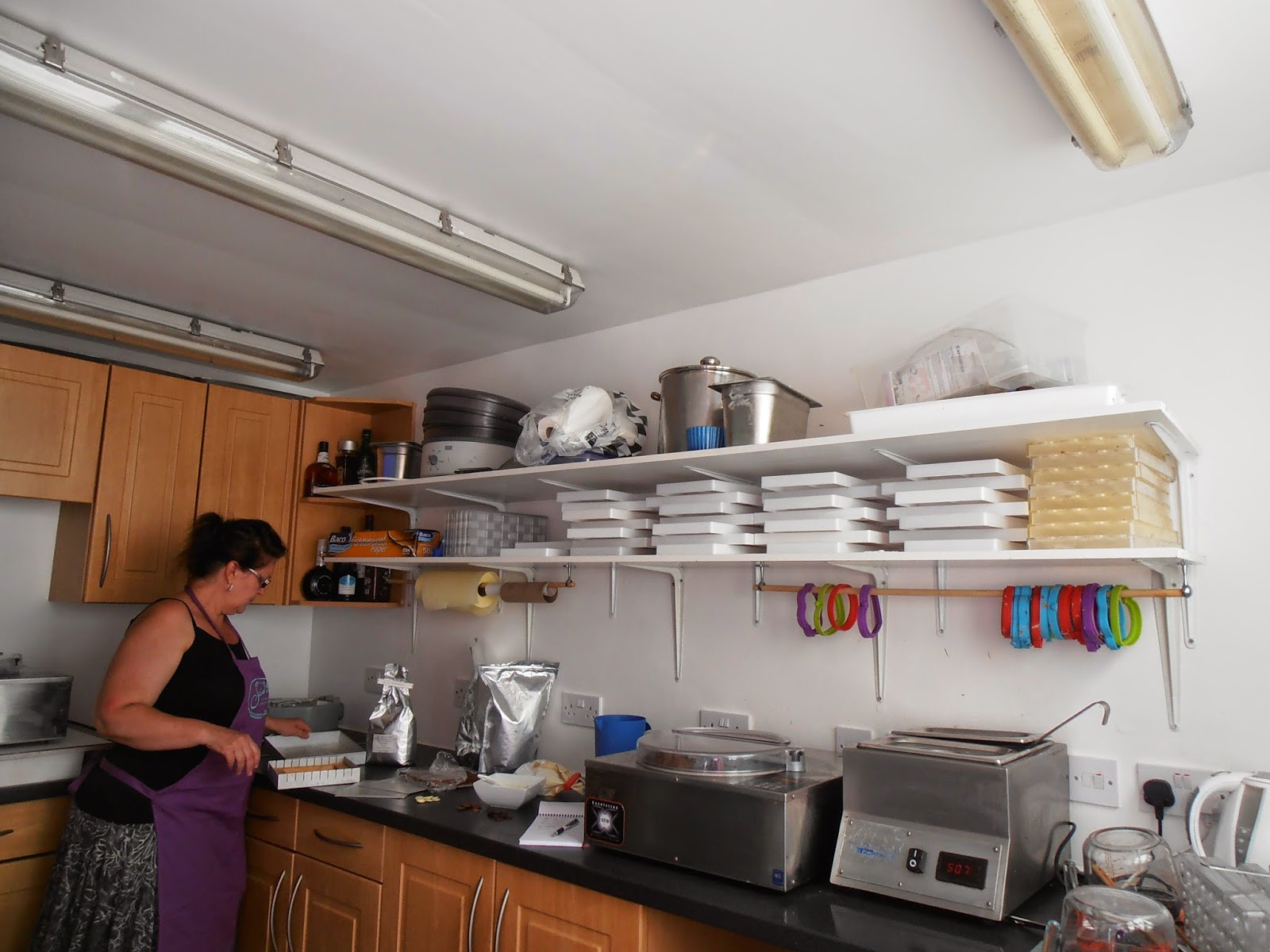 Amazingly by the end of the day these would be in chocolates ready to steal... er I mean bag and sell. She heated up some locally produced honey and cream and poured it all over the lavender and split vanilla pods. I can't tell you what the smell was like. But it was good. That was left to cool whilst she got on with making some orange chocolate bars.