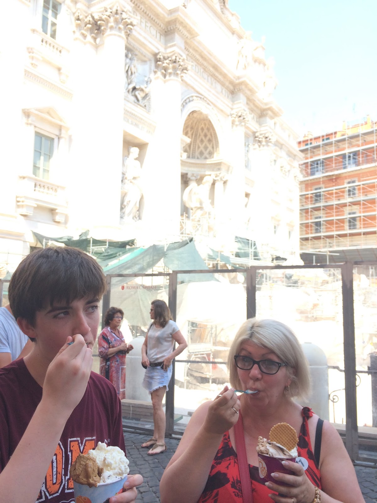 Alas the Trevi Fountain was under reconstruction so we had to console ourselves with massive ice-creams. BTW, the Hop-on, Hop-off bus was 18 euros each and definitely worth it.