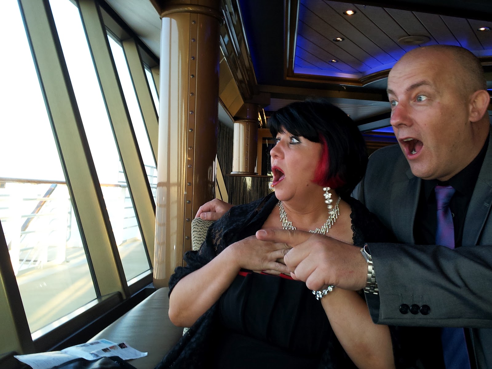Mr C – bless him – thought that everyone walked around in tuxedos during the day as well. Ah the myths there are on ships! He now realises that you don’t need horribly expensive ball-gowns and Moss Bros suits on cruises. One black frock with a different necklace does me for at least two posh nights. He decides to fit in a few catalogue poses - I feel obliged to assist.