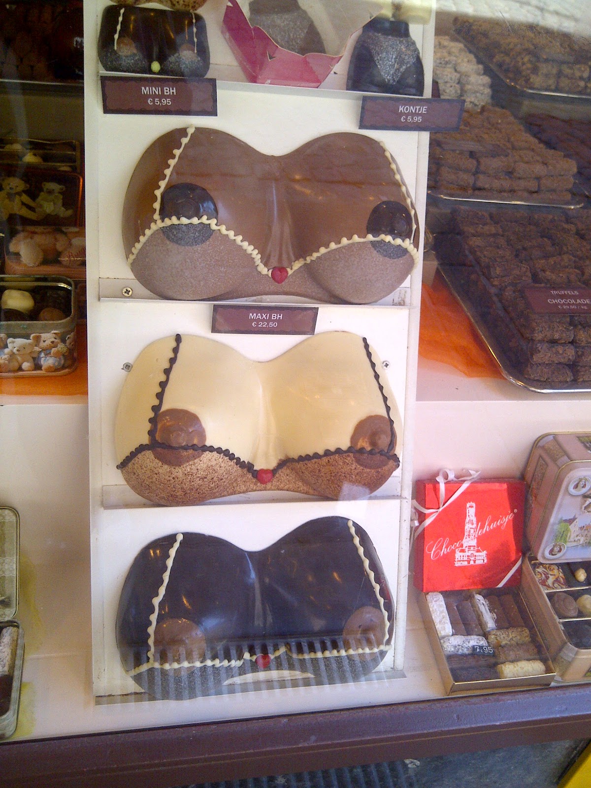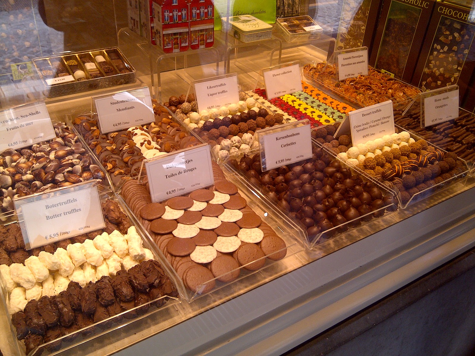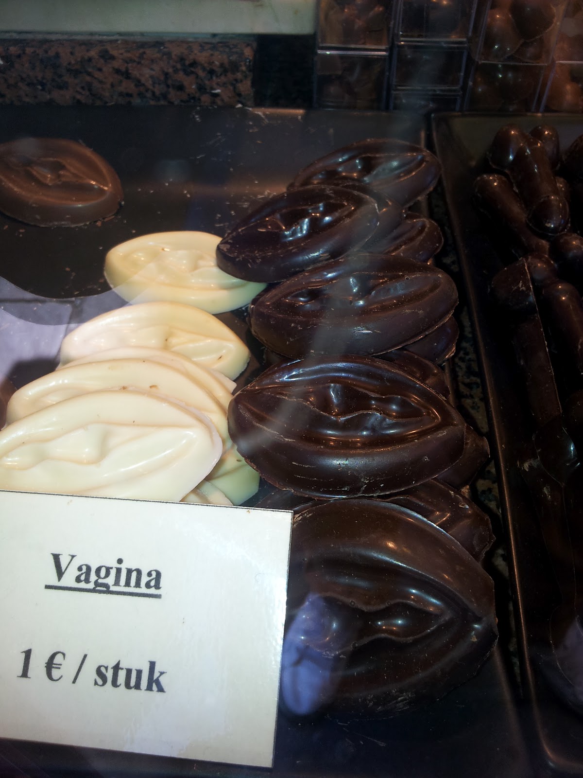 Bruges is delightful - like a cobbled street town from Chitty Chitty Bang Bang. We half expect to see Benny Hill working from a toyshop here. It's much bigger than I imagined, with pretty pealing bells and chocolate shops EVERYWHERE. Quite imaginative designs of chocolates too (gulp!)