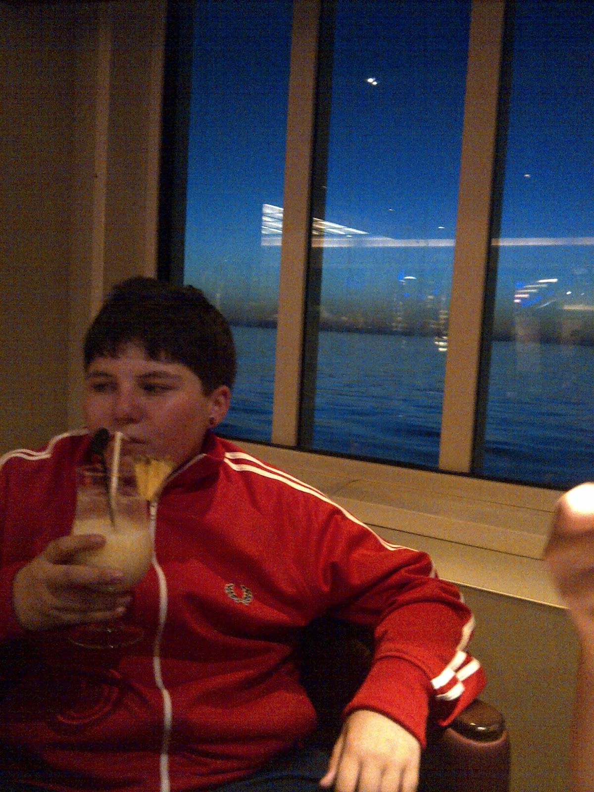 He’s loving the ambience of the restaurants and the friendliness of the waiters and can’t believe how alive the ship is after dinner.Spoilt for choice what to do: shop, go and see a show, visit the casino… we plump for the coffee bar:The Tazzine. And the Metropolis - right at the top of the shop. The sea is calm as milk – Mr C can’t actually believe we’re moving.He’s heard too many stories about force 13 gales but the ship is rock-steady, the sun is blasting out rays – we could be in the Med rather than heading towards Zeebrugge