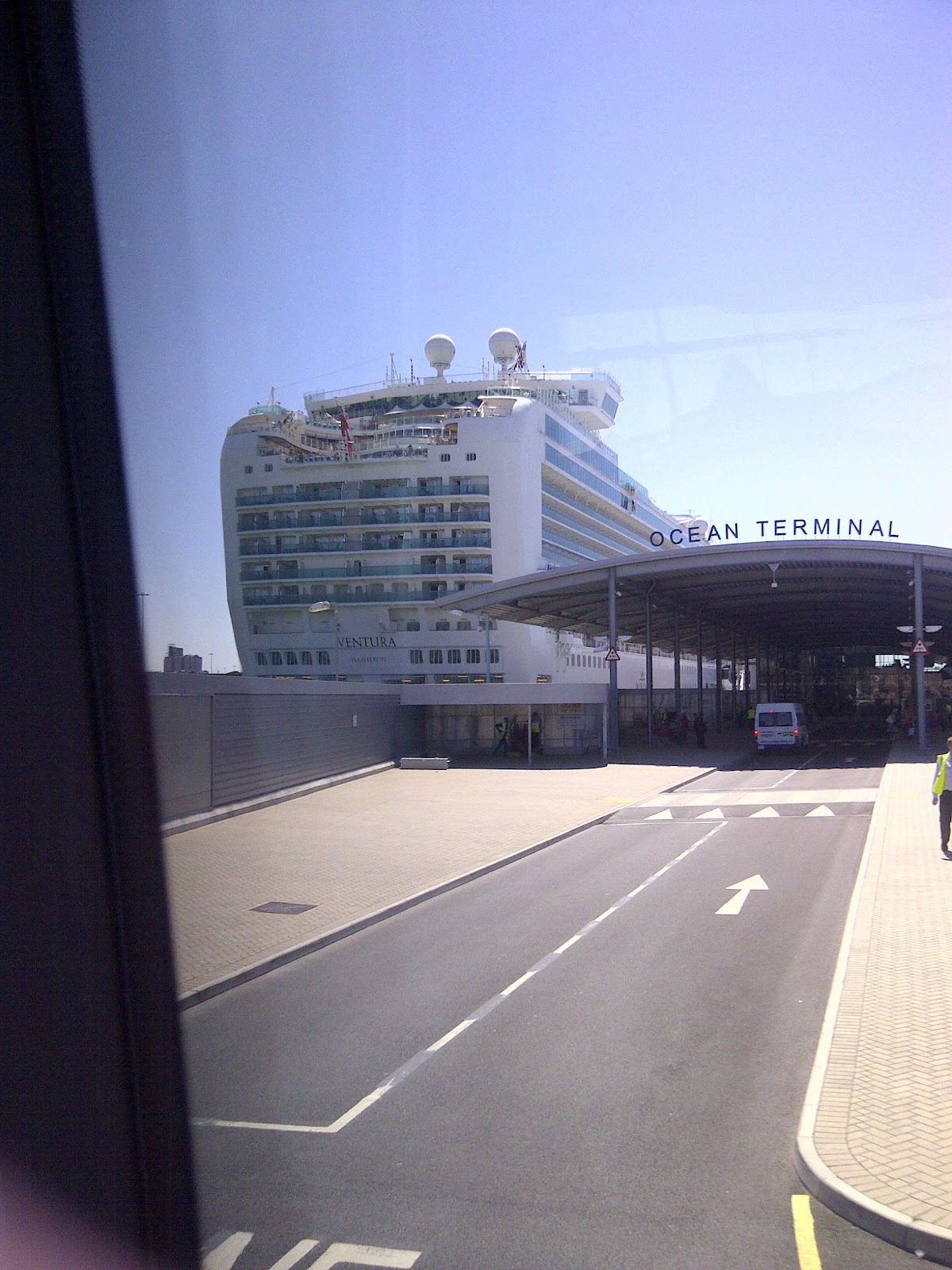 Taking a ‘cruise virgin’ on his first ship carries a lot of responsibility – especially after I've built up a holiday taken this way to be the best thing since sliced bread. Would it live up to the hype? Especially as I wouldn’t have thought Mr C was your typical cruise passenger. He doesn’t like heights or deep water, has heard too much about the horrors of sea-sickness… and he’s sharing a cabin with myself and my two sons. He fears claustrophobia – especially after hearing he’ll be onboard with 3000 other passengers: he has visions of being crushed everywhere he goes.At 7am on Monday morning, we are at the bus station with our suitcases to catch the Eavesway bus. It’s a nice feeling to know that the next time we see those suitcases, they will be outside our cabin. No lugging them about from bus to ship and should anything amiss happen to the bus – ie breaking down, caught up in traffic, the ship will hang on for us. That wouldn’t happen if we were in our own car. (Coming home we were delayed by over two hours because of 2 huge crashes on the motorway – so it happens). We always seem to stop at Northampton services, which has become part of our little regime. The service there is always so awful, it just serves to prepare us for the different world waiting for us around the corner. I’m giddy as a kipper, Mr C doesn’t see it (yet).From arriving at the docks we’re checked in and clear customs within half an hour. Mr C thought the ship would be big but I don’t think he was prepared just for how massive she is as he has a slight panic about how something the size of a small village is going to be able to float.