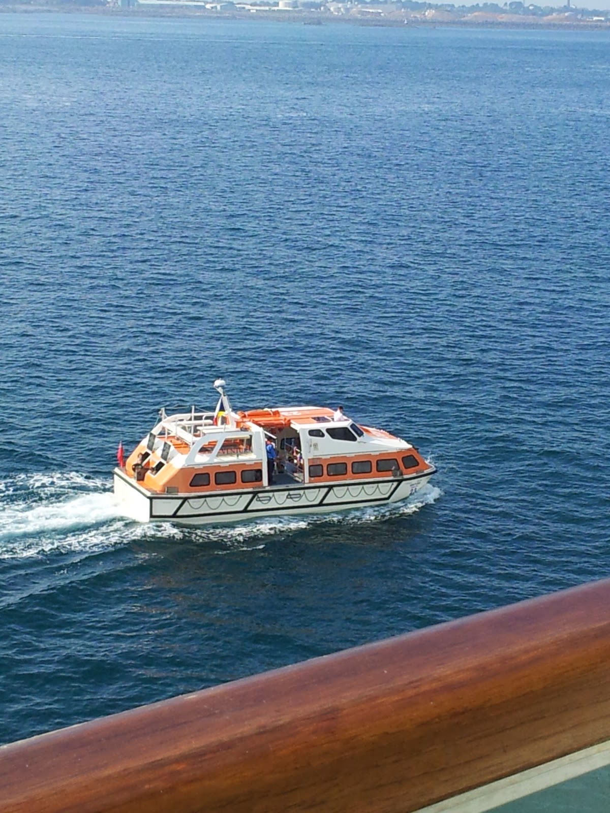 The last day is spent in Guernsey. A cloud drifts past the blue sky, realises he’s on his own and so buggers off embarrassed. We go downstairs for a posh breakfast this morning, picked from a menu and served by waiters rather than the buffet serve-yourself restaurant upstairs. It’s tenders to get ashore – my faves – lovely little bouncy boats to carry you from the ship.