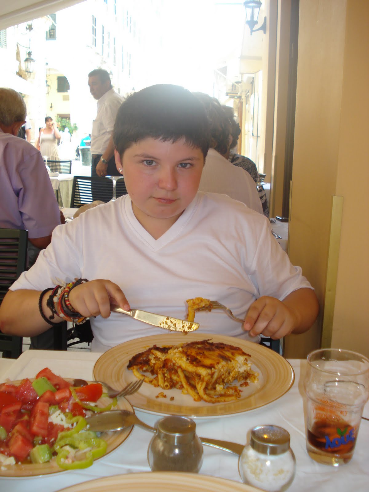 Then it was the time of lovely Corfu. I LOVE Corfu and we were looking forward to seeing our old friends of Restaurant Rex - the restaurant the girls go to in the book. The food is fabulous - the pasta and beef and Greek salads to die for. We sat there dining Al Fresco and walking the world go by for nearly 2 hours - bliss.
