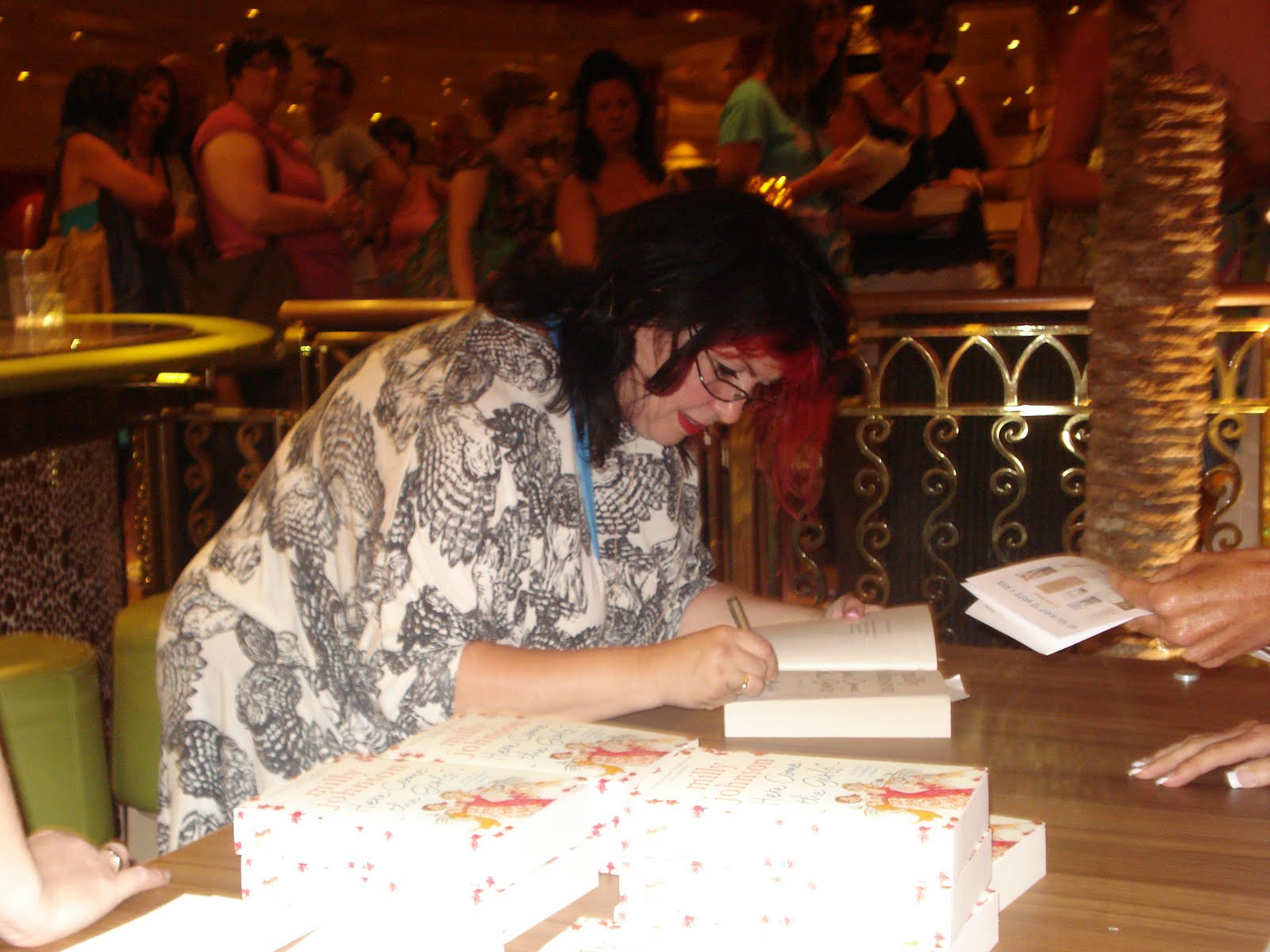 I worked a couple of afternoons on board doing talks about the reality of life as an author and a crash course in how to write a book. (Surprisingly I was advertised as 'not to be missed' - so lucky it was the Horizon and not the Police Marksmen's Gazette - ho ho). I was chuffed as buttons to find that both were packed out and I sold soooo many books that my arm nearly dropped off signing them. Plus lots of people had bought them before and brought them on board to sign. There was a fabulous response and I met some wonderful people on board. I even did a bit of stand up - what a rush!
