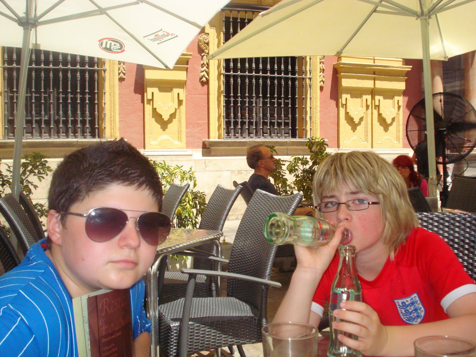 I had a visit to the spa to get a hot stones neck and shoulder massage as my neck was so crunchy it would have been told to shush in libraries. I had a rather handsome South African man de-knotting me. Sigh... Right - less of that and back to the cruise. Our first stop was Malaga - very very sunny Malaga, where we got off, walked around, my son bought some of his usual tourist rubbish and we sat by the cathedral under a fan that blew out a mist of cool water, and watched the world go by.