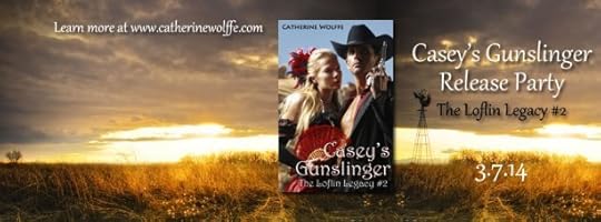 Today > Friday, March 7th, Catherine is releasing the second book in her western romance series, The Loflin Legacy. Join us TONIGHT for the Facebook event for Casey’s Gunslinger. Click here or on the banner below.